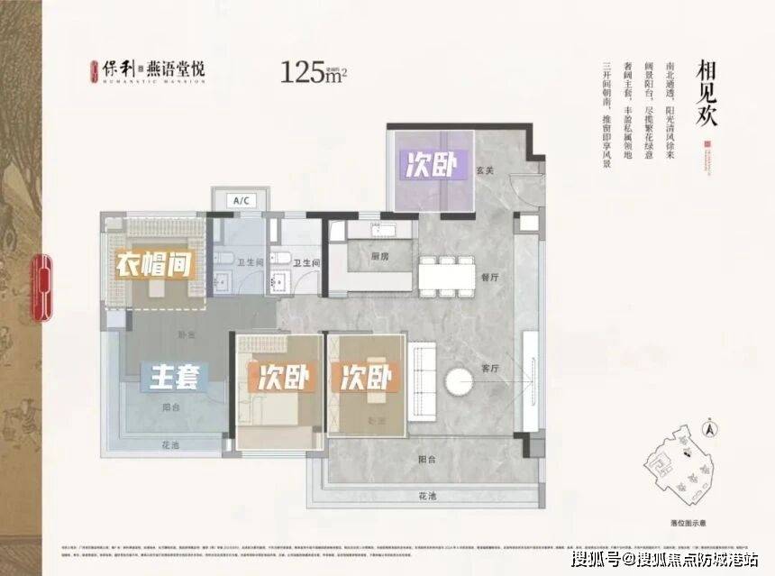 125㎡四房户型是改善型家庭的终极梦想。南北对流双阳台设计,让清风穿堂而过,四季如春。南向景观阳台连通客厅,面宽极大,既是观景台,也是空中花园,可以养花种草,修身养性。北向生活阳台则专门用于收纳杂物、晾晒衣物,实现了美观与实用的完美分离。主卧采光面达8米,宽敞明亮,配备了独立的步入式衣帽间和豪华主卫,营造出酒店套房般的尊贵体验。三个次卧也都尺度宜人,足以容纳双人床和衣柜。该户型总价790万起,为中心区的大平层生活提供了极具吸引力的入场券。